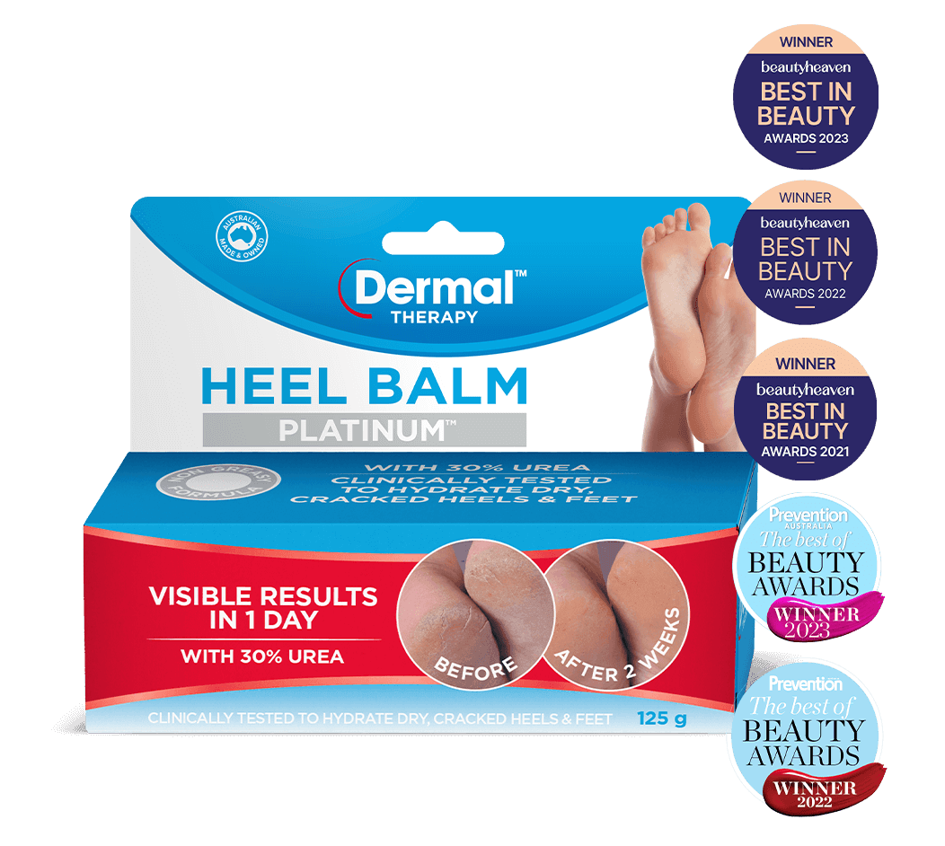 Dermal Therapy Heel Balm is enhanced with 25% urea, which binds water and retains moisture, providing intense hydration of the skin and loosening flaky layers. Plus, it promotes regeneration of the epidermal barrier, which means smoother heels and softer skin, also suitable for people living with diabetic anhidrosis.
